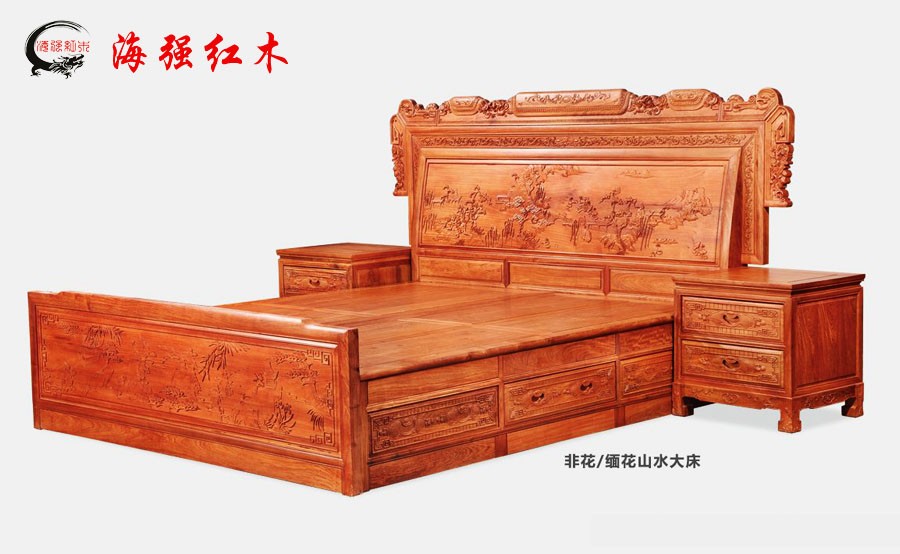 山水雕花大床